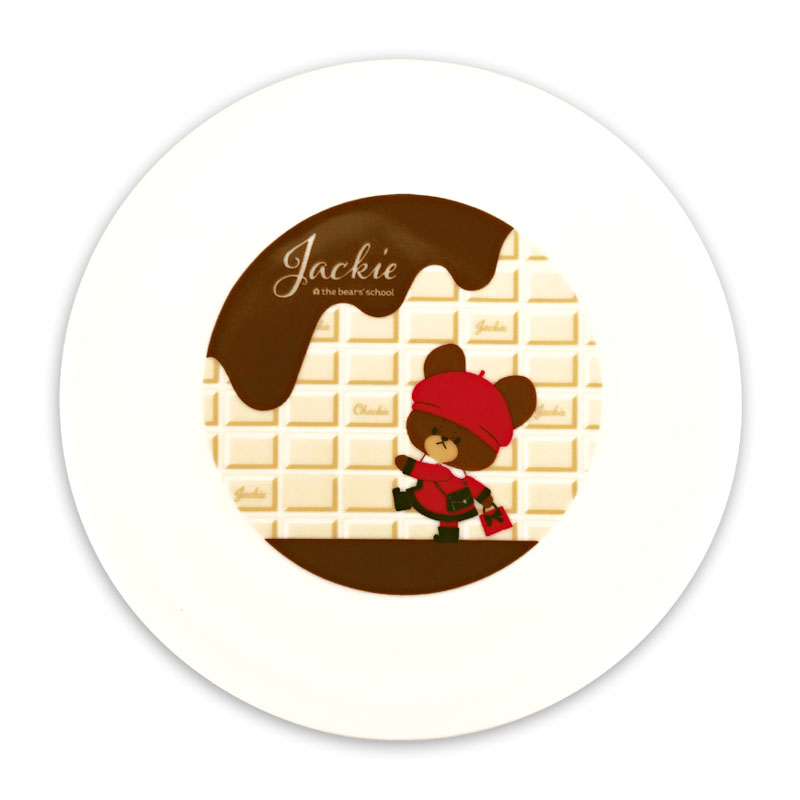 ジャッキーとチョコレートのイラストがとてもオシャレ。シンプルなデザインで、どんなお料理も引き立ててくれそう。マグや茶碗とシリーズ使いしたくなるプレートです。