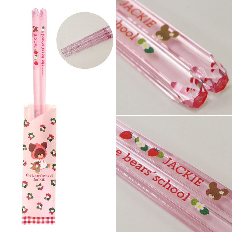 透明素材にいちごとジャッキーのアートがとても可愛くマッチしたクリア箸。お子さんにも大人にも嬉しいお箸です。