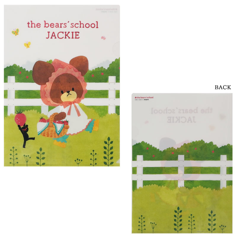 いちごとジャッキーのアートがとても可愛くマッチしたクリアファイル。書類などの整理に何枚も欲しくなるアイテムですね。